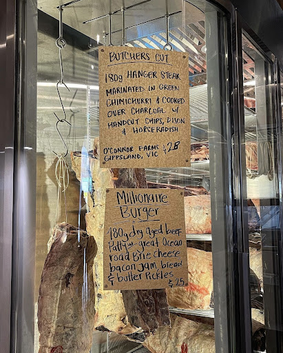 You're greeted with the stainless steel face of the open kitchen, reminiscent of an American diner. A long, curvy fridge lines the wall, and they had two massive, pre butchered pieces of beef aging on hooks hanging in the fridge. This place knows their meat.