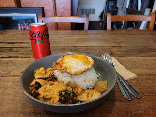 You know Thai food is good when the staff are Thai and this place is one of that. I'm born and raised in Thai so trust me when I say their Padkaprow is good. I noticed the 10 AUD (cash only) Padkaprow with rice for lunch so I had to stop by. I have had it in Aus in another restaurant before but it came out so different I had to ask if it's really Padkaprow. But this place did not disappoint. For the price I thought it was a pre cooked but after ordered I heard the pan and cooing sound and I order it to be Thai spicy and they did not disappoint. I would say it's taste very good and this dish is actually the most common for Thai people in Thailand. No we don't eat Pad Thai that much. That's just Thai food foreigner can handle spiciness. So give it a try and then go try it for real in Thailand. Here they do it with chicken but in most places you can have different choice of meat from pork, beef, seafood to Tofu. The place also ha s this beautiful picture on the wall and even give free bubly drink for my lunch. Will definitely ask my friends to try next time. Ps. The rice is soft and...