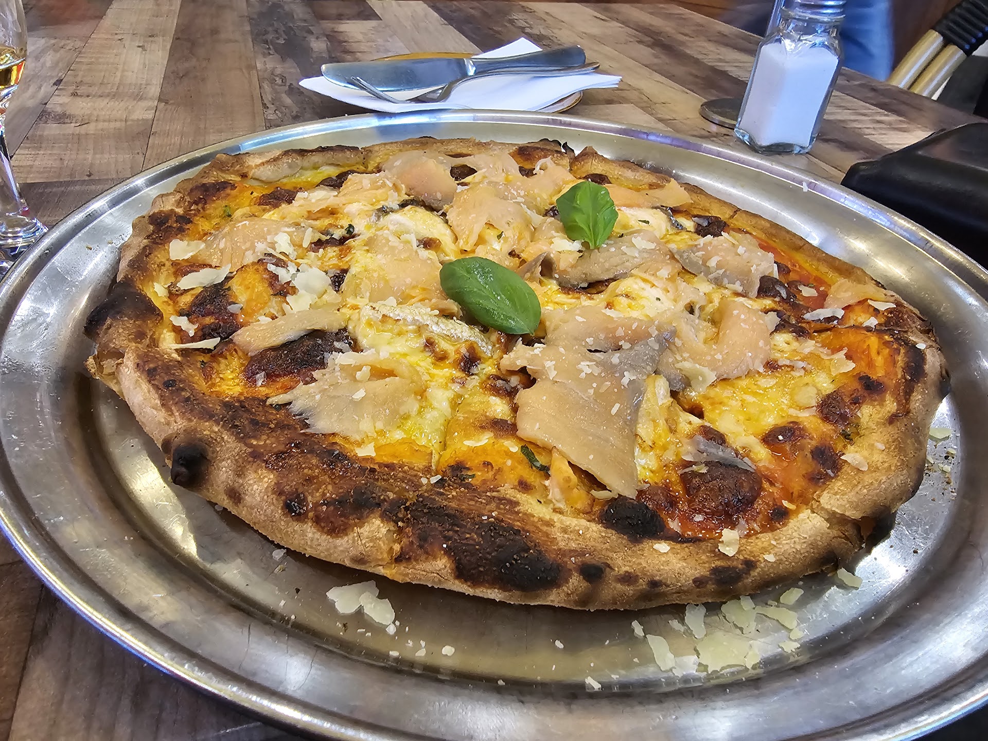 I recently dined at Correto Pizza Ristorante and was thoroughly impressed by the experience. The smoked salmon pizza was a highlight, featuring an authentic crispy crust that was perfectly cooked—crisp on the outside without being wet in the middle. The Salmon was part cooked and the smoked salmon was layered at the end of cooking with fresh basil leaves. This level of attention to detail in the cooking was truly commendable.