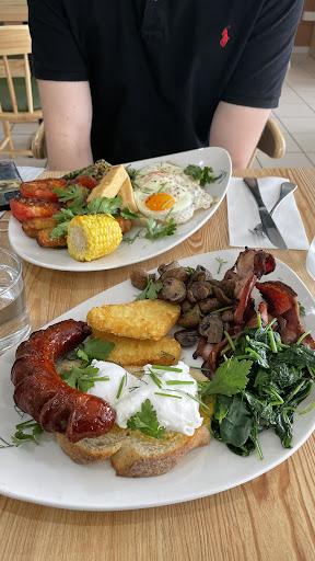 Read moreI don’t normally leave reviews but I can’t not share this place. From the moment you walk in you are greeted with so many smiling faces ready to get you seated. I was surprised with how many different seating arrangements there are you can choose to sit up at the window and watch the busy Main Street or there are really cool booths you can sit back and relax in. The big green grass wall looks awesome my teenage daughter said it was the place to go to take the good old instagram pics you constantly see popping up on your feed. As for the food we were very happy we had the pancakes and I’m so glad we did They were melt in your mouth and a great big serve they came with ricotta in between them and the most beautiful stringy fluffy fairy floss on top. I also had a chia latte best one I’ve had in years the milk was so silky. Many places I go always burn the milk and don’t really care what it tastes like so I was so delighted when I had my first sip. This place is going to be my go to. If you haven’t been I suggest you go you won’t be disappointed but make sure you go with an empty stomach as there is sooo much to...