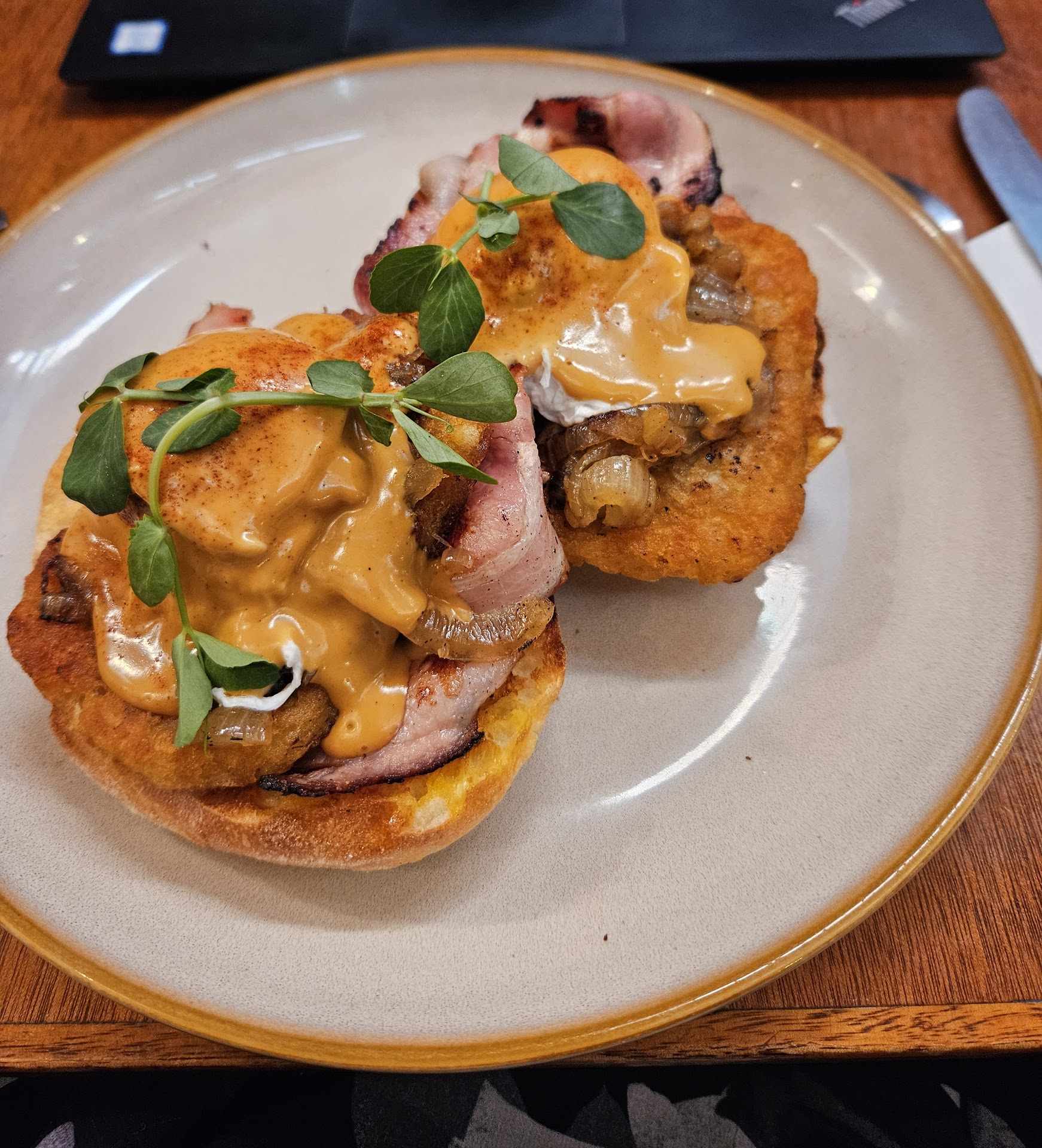 Had the Texas Benedict and got some work done on a laptop comfortably. Really lovely staff who checked in if I'd like any water, etc. Coffee is excellent and just what I needed after a 5:30am start.