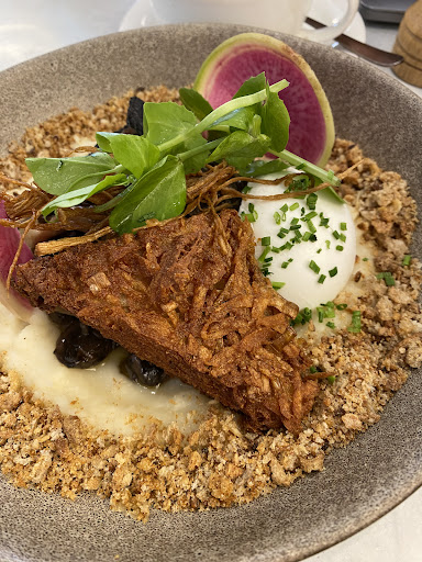 Both of the dishes were so tasty too, we loved the perfectly poached eggs and the corn bread with pulled beef was such a nice combo for the eggs benny. The crunchy kale gave a nice texture balance with the soft mushrooms and polenta.