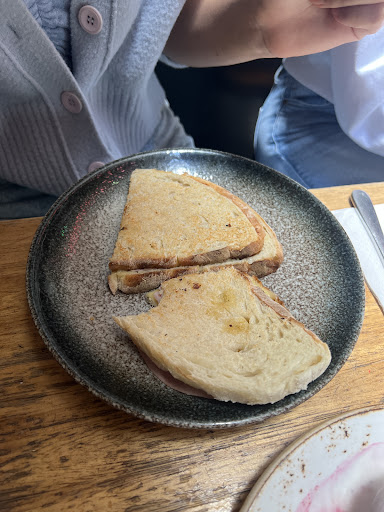 I have to feed my friends like pigeons from my plate while they waiting and i almost finish my entire meal until the next meal comes out, toasted banana bread, waitress just drops it down without saying a word. The third meal, a toasted ham cheese croissant đ„, has yet to arrive. My friend eats her banana bread and then goes up A Second Time to ask them for the croissant. The waitress comes up to our table and says theyâre out of croissants, so that whole time they werenât even making it⊠or going to tell us they were out.