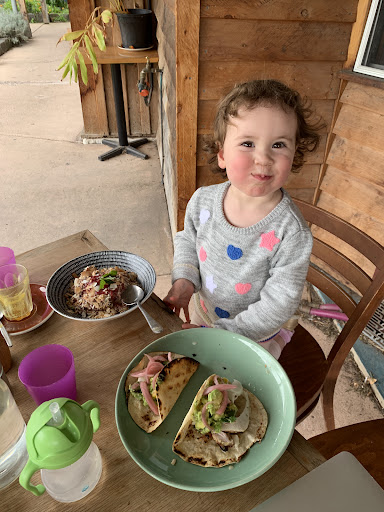 The atmosphere is lovely. Loads of urban hippie types with kids racing around the playground next to the café, and the clinks and murmurs of a myriad projects happening in the background.