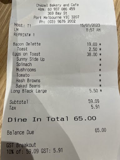 Read moreFood, coffee and location was decent. But, honestly the business behind it is disappointing. “Extras” charged at the bottom part of the menu is 5$ per item - Tomatoes, baked beans, spinach, mushroom and hash brown. All in the same line.