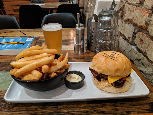 We went a couple months ago for the first time and liked the food and the place, decided to go again. The food overall was okay this time (popcorn chicken good, fried chicken burger and beef burger was good), we also got 2 buffalo chicken burger and the chicken was raw. I ate mine thinking something wasn’t right but didn’t want to complain too much. My partner did tell them about his and they re made it (they were nice about it). House wine advertised for $6 on their menu (House Red, House White listed on top of each other with only price $6) but we ended up paying $9 because apparently only house white is $6 and house red is $9. Very misleading. We ordered our last round of drinks at about 6.45pm, still paid full price although happy hour wasn’t finished yet, unsure why as happy hour is advertised until 7pm. Overall was okay but sadly, after the raw chicken, wine being advertised for less than you’ll actually pay and not getting our happy hour price because it’s close to finish, won’t...