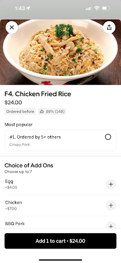 The lady who took our order had a very hard time understanding us. The menu clearly said that you can order char siu pork with either rice, dry noodle or soup noodle but she argued that the picture only showed with rice. Eventually she gave in but portion size was too small for what it was worth. The char siu also did not look like their regular char siu as Ive eaten in this exact same branch before several times for several years. The taste was ok but customer service could have been better. She also does not seem to realise that shooing your customers is quite rude. Very upset about this one person. The combination crispy noodles are not offered with combo seafood and chicken and pork anymore, only plain seafood. The noodles were also significantly thinner than they were before. A shame as it was my favorite dish of theirs. Guess I will have to go find a better...