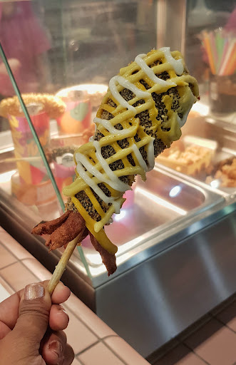 We tried the Sausage, Cheddar, and Noodle Corn Dog, and my son loved it. Itโs made fresh to order, and the crispy noodle coating has a fun, crunchy textureโkind of like Mamee noodles!๐