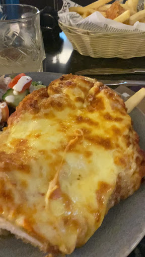The portion of the chick PaM is bigger than my FLat face and the chips and salad is just define…. Yum …