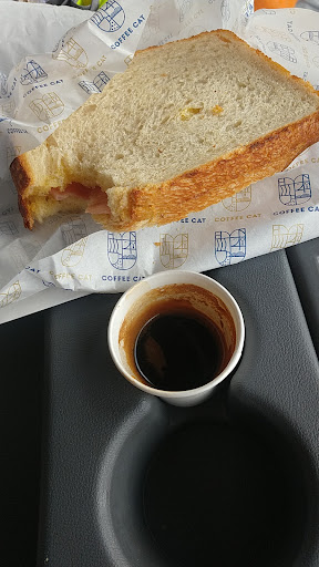 In we flew from Sydney Town On the road, Traralgon-bound We needed lunch - no lavish feast In transit to the Great South East It had good ratings - Let's try that The cafe they call Coffee Cat