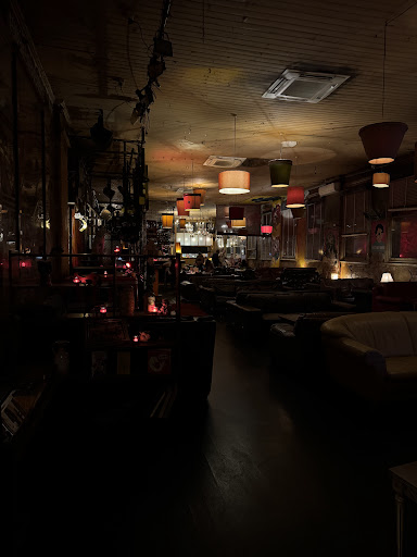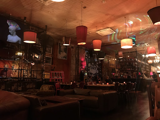 Dim red lighting and a very funky layout with the choice to dine at tables or couches. DJ and a photo booth are within the restaurant, and volume inside was decent. Might not be everyoneâs choice of ambiance and requires stair access next to Revs, however we thought it was a very fun, quirky and unique setup, targeting adult groups.