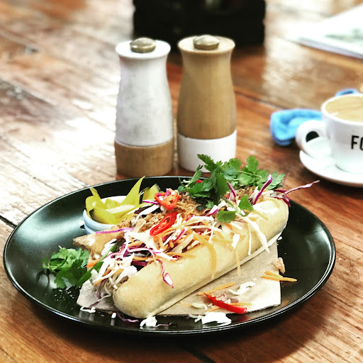 Read moreClearly coming here at noon on a Sunday is when you'll find this place absolutely buzzing. A birthday celebration, young couples, new parents and friends - all come here for an amazing culinary experience. In what appears a suburban warehouse, it's more in an industrial area of Mornington, this is well worth a visit, particularly if you're a coffee aficionado. I chose the 'Good Morning Vietnam' meal which consists of banh mi with house marinated and roasted char sui pork, fried egg, freh chilli, coriander, fresh mayo all in a bun with a little dish of pickles on the side. Size was reasonable, with a generous helping of pork that was cooked to perfection. My friend had the Springtime Salad that frankly, takes your breath away when it arrives at the table. Made of harissa roasted pumpkin, red quinoa, charred spring onions, pomegranate, toasted hazelnuts, pepita seeds, sesame, roasted garlic and tahini dressing. An exceptional portion size but light and refreshing on the palete. Our litle 18 month companion had scrambled eggs, bacon and toast. Again, very delicious. Now onto the coffee - yep this is a great place for any hot beverage and certainly my chai was nice, although it could've been hotter. My friend's coffee was ideal and ordering extra strong was just what the doctor ordered. For those with a sweet tooth, there are some lovely looking cakes at the counter if you want a coffee and cake to go. The seating is industrial on large tables, some with chairs, some with stools. There is a lovely rear courtyard garden that could easily seat 30 people under umbrellas and surrounded by nice artwork. A special mention to the staff and chefs who do an amazing job with customer service and food preparation considering the volume of people that were here today. Notes: wheelchair accessible, disabled friendly, kid friendly with high chairs available, reasonable parking...