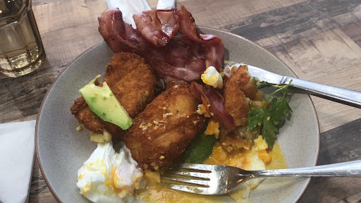Read moreI come here on occasion and have mixed feelings about it. The food is REALLY good, my favourite is the good ol’ ham and cheese sandwich hock is delicious, and there’s a good variety of cold and hot drinks to choose from. The coffee and tea are decent but not amazing, and the hot chocolate (my favourite drink) was very disappointing, it’s very bland and not worth the price at all. I haven’t had any of the deserts so I can’t say anything about those. I think everything is a bit overpriced though. There’s also no prices anywhere, they use to have the prices up on the back wall but they’re gone now for some reason. There’s also no prices anywhere, the drinks in the fridge have no prices, there are no prices on the glass where the deserts are, I have to look on the ubereats app to see how much what I want is. They only have half the menu on laminated coloured sheets on the outside tables but they’re very limited so it’s hard to get your hands on one, and it’s only a small portion of their menu too, not the whole menu.