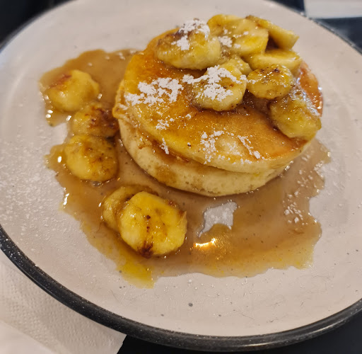 So glad to be able to find pancakes with eggs and maple syrup - I have to custom order everywhere! The pancakes are nice but soo thick that they didn't cook properly. Eggs were perfect and I heard the bacon was good. Iced latte's are far too big though - like a milkshake glass....