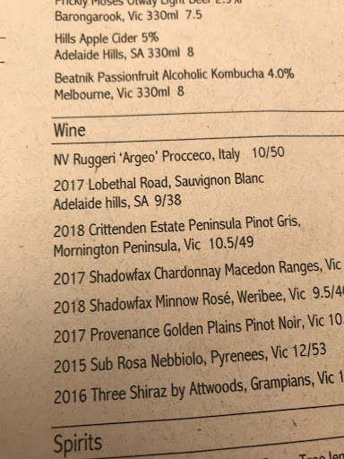 3s (Melbourne eateries with good solid tucker that I wouldn't mind eating fairly regularly. Food is competent)[63]: Allegro (CBD) Alma (Geelong) A Minor Place (Brunswick) Bar Idda (East Brunswick) Bekendales (Croydon) Bellarine Estate (Bellarine) Bistro Guillaume (Southbank) Bistro Thierry (Toorak) Boire (Collingwood)[RIP] Brunswick Flour Mill (Bunswick) Cafe Terroni (Yarraville) Carlton Wine Room (Carlton) Carsons (Yarraville) Chapelli's (South Yarra) Cheeky Monkey (Richmond) Chez Bob (Armadale) Chez Olivier (South Yarra) Chris's Beacon Point Restaurant (Apollo Bay) Cicciolina (St Kilda) Collins Kitchen (CBD) Cornershop (Yarraville) Di Palma's (East Kew) D.O.C. Mozzarella Bar (Carlton) Donnini's (Carlton) Dragon Boat (CBD)[RIP] Emerge (Geelong) Empire Cafe Gallery (Brunswick)[RIP] En Izakaya (Balaclava)[RIP] Enoteca Vino Bar (Carlton North) Feast Of Merit (Richmond)[RIP] Fiorelli (Hawthorn East) France-Soir (South Yarra) Grossi Florentino: The Restaurant (CBD) Ides (Collingwood) Izakaya Chuji (CBD) Kinya (Docklands)[RIP] Kofi Beans (Croydon) Laurent Boulangerie Patisserie (Toorak) Lau's Family Kitchen (St Kilda)[RIP] Lindt Chocolat Cafe (CBD)[RIP] Little Creatures Dining Hall (Fitzroy)[RIP] Miss Marple's Tearoom (Sassafras) Monsieur Truffe (East Brunswick) Mr. Wolf (St Kilda) Orange (Windsor)[RIP] Pumphouse Hotel (Fitzroy) Punch Lane (CBD) Reunion Cafe And Dining (Surrey Hills) Sapa Hills (Footscray) Secret Kitchen (Doncaster) Shujinko (CBD) Thanh Phong (Richmond)[RIP] The Carlisle Wine Bar (Balaclava)[RIP] The Green Refectory (Brunswick) The Hardware Societe (CBD) The Kent Hotel (Carlton North) The Perch At Lavers Hill (Lavers Hill) Tim Ho Wan (CBD) Truffles Patisserie (Balaclava) Vines Restaurant at Helen's Hill (Coldstream) Wing Loong (CBD)[RIP] Zelena Cafe Bar & Restaurant (Croydon) Zen (Hawthorn)
