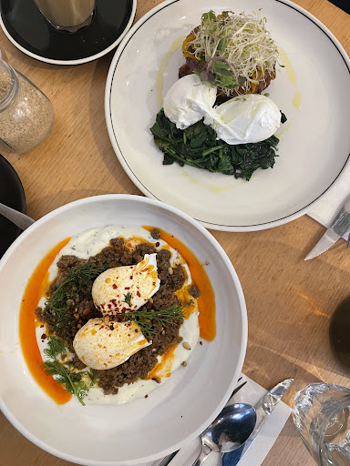 Read moreIâve been waiting to go to this place because every time I stepped in the door and it was between 1-1.30 knowing they closed at three, they told me the kitchen was closed. It happened 3 times and I was starting to think they had my picture on a wall behind the counter saying donât let her in. So when I finally lucked in on a day they were still open, I was disappointed that of the 4 of us, only one enjoyed their meal (grilled chicken salad I think). I was disappointed because I wanted the pancakes and they had run outâŚ(because how do you run out of pancakes?!) and then I came to the shocking revelation that there was no bacon. At all. On the menu. Now I understand this is a normal situation in a halal restaurant, but to my knowledge, itâs not a halal restaurant, and if it is, then could you please make this a little more obvious so people who are struck down with their first world white guy problems like what to do when the restaurant is out of pancakes and HAS NO BACON know how to proceed. The other two I was with had eggs with stuff and found it all generally lacking and the bread too hard to cut with a butter knife and so ere sharing the knife that came with the chicken salad. The thing I looked up that led me to want to try it was the coffee review because Iâm a snob of the highest order there but Iâd already had 3 large latteâs before I got there and needed to cut myself off. It was just a big letdown that was really only saved by the nice outdoor area...