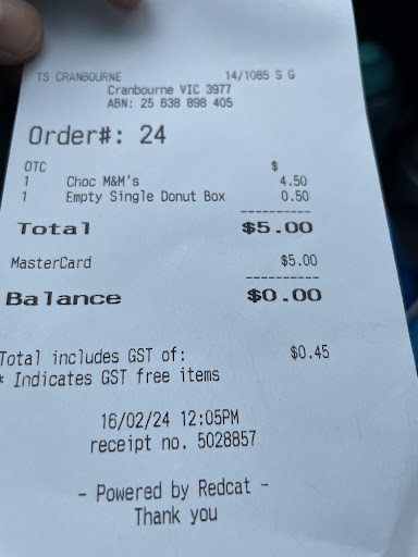 So I went to my friend’s place and she ordered some donuts from the Cranbourne branch via Uber eats. I have celiac disease so we have been pretty clear with the order . She ordered 6 non gluten free and 2 gluten free donuts for me . The box of non gluten free came and then there were 2 seperate paper bags one had a gluten free donut in the sealed pack and the other had another seperate donut ( a jam filled donut that I ordered GLUTEN FREE) which I thought was gluten free as that’s what I ordered and expected them to deliver but it wasn’t . It was a normal jam filled gluten donut. I ate it and just had a thought that why it’s that soft and gluten free but not in the sealed package . So we contacted them and got to know that they MISTAKENLY gave a normal donut and charges us for a gluten free donut. They instantly have the money back but the damage it has caused in my gut cannot be reversed . So please the staff should have a proper knowledge and awareness of how serious it can get for a person with an auto immune disorder to eat gluten when they aren’t allowed to. It’s literally cancels out all the gluten that I did not eat in the...