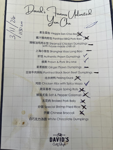 ... Yes, it's Lynda here - TwinSister of Monica, who posted a review previously ... ... And yes, it was I who had excitedly booked the YumCha lunch on Sat24thMay, for our 55th birthday ... ... I have read nothing!!! but fab! reviews of David's. So my expectations were maybe? unreasonably high??... ... It has pained me greatly to give our Birthday YumCha experience 2 out of 5 stars ... ... No complimentary glass of birthday bubbly upon our arrival, as Braxton had said would be noted with our 55th birthday! booking. Drinks offered upon arrival were tap or sparkling. We ordered both, with a glass of ice. Only tap arrived. Had to remind the young lady who took our water! requests for the sparkling & ice, and the wait for alcoholic glasses were a good 20mins, both! times ordered... ... The food: absolutely edible, but VERY! ordinary. Dumplings dumplings dumplings and buns buns buns - majority. "A" piece of PekingDuck, that did not have plum sauce? Think?? it was Soy??? And it was steamed? Certainly NOT roasted. And the duck was sadly a tad chewy ... Lastly, re. the food: for what you are served, the food is extremely small portions. It is NOT "Limitless". I am VERY aware this is YumCha, not an "all you can eat". But considering the serves of particular tastings are SO small, I was NOT expecting to "share" particular dishes... ... The lunch was a fair&reasonable 2 hour offering. I sooo! wanted to be out the door! on the 1hr mark! I had NOOO! interest in staying for the "gooey White Chocolate Dumplings". Nooo more Dumplings pleeease ... ... I was NOT expecting an overly personalised lunch. It's yumCha! But this was an extremely! pedestrian offering, for a $200...