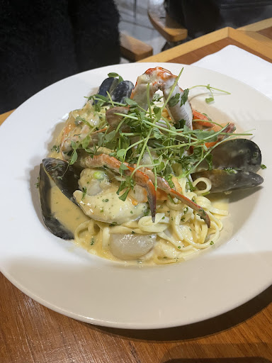 With only 3 other full tables inside, we figured we wouldn’t be waiting very long. Entree took 20ish minutes to come out, drinks came just after (20+min wait on 2 glasses of wine, a cocktail and a Jack and coke), devoured the garlic bread instantly (it was very nice) and proceeded to wait another 40mins (at this point waiting over an hour for mains), during this time we seen staff standing over near the kitchen beside each other talking, we tried flagging staff multiple times to order more drinks and turn on the heater (we were freezing!) while we waited and got ignored until we we had to physically beckon them over twice. Which was quite an uncomfortable experience.