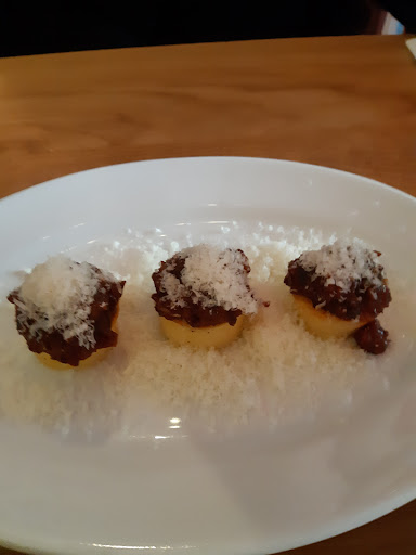 We ordered a size of eggplant chips which was about $13. The portion was so small, roughly a handful. We also ordered arancini, which were smaller than a ping pong ball. The portion sizes were comically small!
