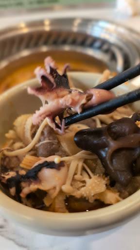 Saw this on Instagram and decided to try it out. The lunchtime total, including Tom Yum soup base came out to $37.74, so a pretty good deal considering the amount we normally spend per person at hotpot places. I went around 2:30 on a weekday, so it was not busy. The food was refilled frequently, and the variety was impressive. I love the little fortune bags with roe, and the cuttlefish dumplings were really tasty. The beef was tender, and the Tom Yum soup base was just enough spice and tang to flavor the food without needing to add additional dipping sauce. I really enjoyed the ability to take a piece or 2 from items I’ve never tried, without needing to order an entire portion. Quail eggs, fish noodles, several types of tofu and a few vegetables I’ve never even heard of before. The soda cans are sitting at the center of the conveyer belt, so are not refrigerated, but they bring you a cup of ice and it was completely fine.
