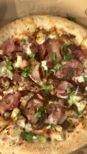 The shop itself was filthy. Uneaten food everywhere and boxes covered each table. The garbage bin was overflowing but none of the staff members cared about it. I would say my garbage bins looks better than the dine in place at the dominos store. I understand that you had a busy day but the staff was happily chatting and using phone rather than attempting to even clean the place.