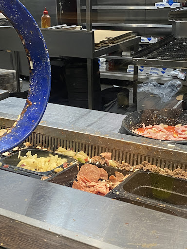 To make matters worse, the cooking pans and utensils were visibly dirty, with food residues and grime buildup. These pans were used to cook all types of pizzas without proper cleaning, compromising the safety and quality of the food. It's unacceptable for a food establishment to operate in such an unsanitary manner.