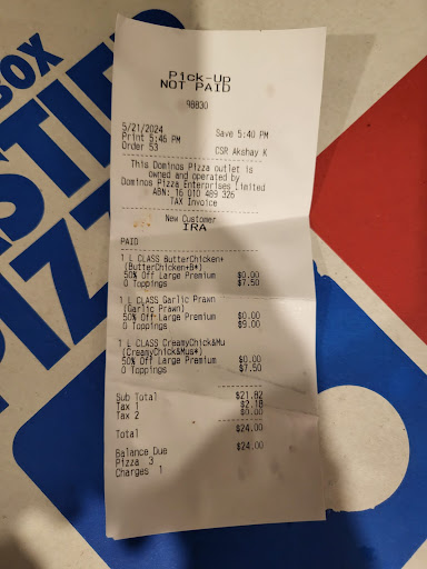 Read moreOrdered online. Pizza, cheezy garlic bread & a mini chocolate sundae. I arrived at store in Mill Park 15 minutes later. The pizza & garlic bread was ready but the ice cream sundae was not prepared. The lass serving was full of apologies, but unable to get the chocolate sauce out of not one but two bottles. She eventually, after trying for 5 minutes scooped out the hard chocolate sauce in lumps & tried valiantly to get it into the cup. Finally she goes to get the ice cream out of a ‘bucket’ I think was some sort of fridge under the bench. Guess they don’t get many orders for this & I see a sloppy watery mess which you cannot possibly call ice cream slopped into the cup & as a result the cup now has sticky mess on outside. She quickly wipes the cup with lord knows what as it’s out of sight. The cup was still sticky when I had to put it in the cup holder in the car. I get home only to find the ice cream, if you can call it that, is melted & the cheezy garlic bread is burnt black on the...