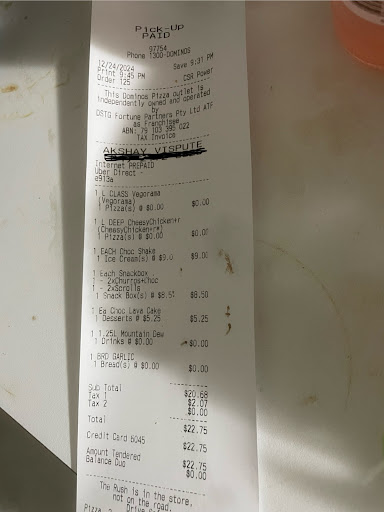 Read moreI ordered from dominos only because I got a voucher from them because they had some issue with my previous order. This time, instead of repeating the same mistake, they made a new mistake. Forgot to send 1.25 liter of drink with my order. When I called, the lady said it’s not our fault, it’s Uber drivers' fault. They need to check whether we have handed over all the things to them or not. I have also worked in hospitality at some point, and it’s basic common sense that delivery drivers only deliver food, and it is the responsibility of restaurant staff to make sure they have given every item to the delivery driver which is mentioned in the order. When I asked the lady to deliver my drink with some other delivery guy, she replied that all our delivery guys were on leave since it's Christmas Eve. If you need a drink today itself, then come pick it up from the store, otherwise we will deliver it some other day. WOW! What customer service? Thanks for ruining my party. Now I don't know when they are going to...