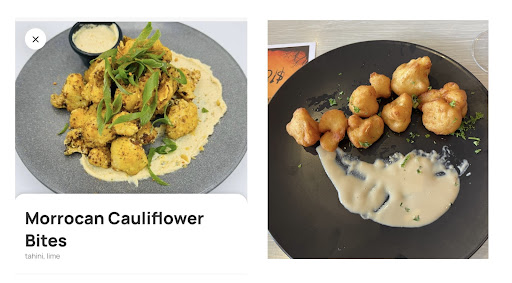Read moreUnfortunately Doncaster Hotel has gone downhill, since my previous visits. We arrived on Saturday before 6pm, and they were sold out of a lot of dishes: chicken nuggets for the kids, sweet potato fries, seafood basket and tandoori chicken. On a positive note the staff were friendly and paitient, they provided us with other options. The food was average, my cousin's steak was overcooked he asked for medium rare and got well done. I ordered some Moroccan cauliflower bites to share and what we thought would be baked and flavoursome with spices (see comparison below)…. we were served mushy cauliflower that was over battered and fried. The main disappointment started before our meal, as our elderly frail mother who has a 4 wheel walker refused to go up the ramp to the restaurant. The ramp which is under an awning has a sign that says no smoking. However there were 3 patrons smoking right outside the door obstructing the ramp entrance. We therefore had to help her up the stairs and carry her walker up. The no smoking should be more closely monitored. When we entered everyone looked busy, and there was not an opportunity to let anyone know. As mentioned the staff provided great service, though the food and atmosphere was a...