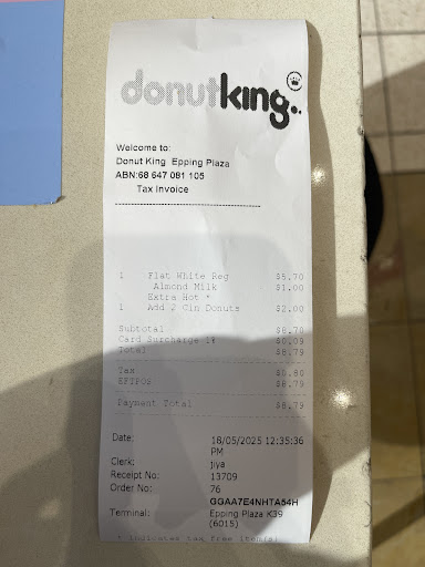 We go weekly to donut king as my twin boys love it as a treat. Today I was so so dissapointed, I asked for 2 pink star donuts and 4 hot cinnamon donuts, what we got was 4 cold and hard cinnamon dounuts not to mention one yellow star and one pink star. I went to sit down and noticed the two different colour of donuts and took the yellow one back, she put it back on the rack and swapped with the pink one. I was gobsmacked the hygiene curiosity I have now for that place is high not to mention the girls working today were rude, all they did was talk to eachother and not even notice the lack of customer service they provided. It's appalling to see this and to know that a donut that was given to someone and then returned got put back on the rack to resell during this time after covid and being so close to a hospital health and hygiene should be held...