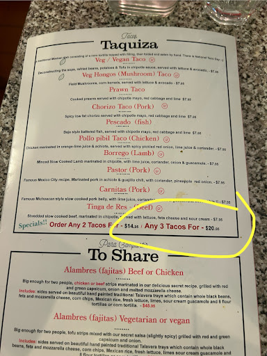 We had a great meal 18 /02/17.We celebrated our anniversary and really couldn't have asked for a nicer experience. Soft shell Tacos 10/10, nachos on the share menu with the black bean and green sauce was on par if not better than nachos we had not long ago 20 miles out from the Mexican border in California. Enchiladas were great and the tamales were also. Only thing that stopped me from giving them a five was that at times the service was slow, the food was 5/5 in quality. We got a couple of shots on the house due to our celebration and one between us later on. Would definitely go back again, the staff friendliness and food was great, plus plenty of parking...