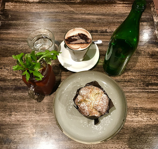 Afternoon tea time or in the case of my friend - time for a Bloody Mary. We came to Eliana Lulu at 2.30pm and it was still busy from the lunch crowd plus being school holidays, quite a few younger people hanging here. They know something others don’t? Yes they do. Central Place has attracted restauranters who know how to differentiate themselves from the other cafes without necessarily poaching business from them. Today I had a hot chocolate and poppyseed muffin. Served on a warm plate, the also warm muffin was light but with the deliciously crispy top (always reminds me of Elaine in a Seinfeld sketch). We watched Adonis make the bloody mary and he did it with absolute style and finesse. Cynthia, was our waitress and was on top of everything. From her invitation to a seat, water on the table, helping me choose what sweet treat to order and then a bag to take home the second half of the muffin I couldn’t eat - she was excellent. The ambience is interesting with the high stools at a bench that open straight out to the street, plus the tables inside that offer a warm feeling during this cold day. Menu is simple and seasonal but there is something for everyone. The food coming to the tables looked very generous in portion sizes. Liked the mural on the wall (see my pic) and who doesn’t love a sunburnt orange coffee machine! Notes: come early for those busy lunch hour periods, in summer this place is very popular, suitable for vegetarians and vegans, restaurant is wheelchair friendly, kid friendly, takeaway available and close to Flinders...