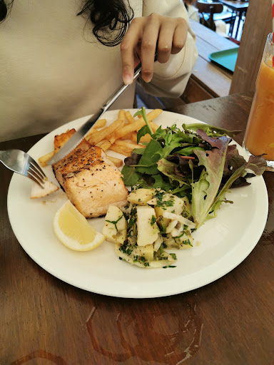 Finally, the food. I ordered the beef burger and my partner ordered the grilled fish (salmon).