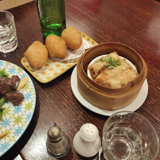 Sleek Chinese restaurant dishing up classic cuisine amid dark-wood furniture and red lanterns.