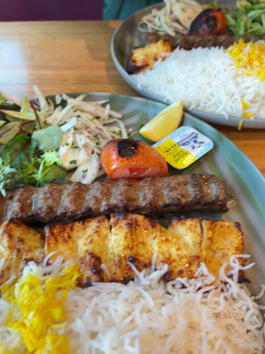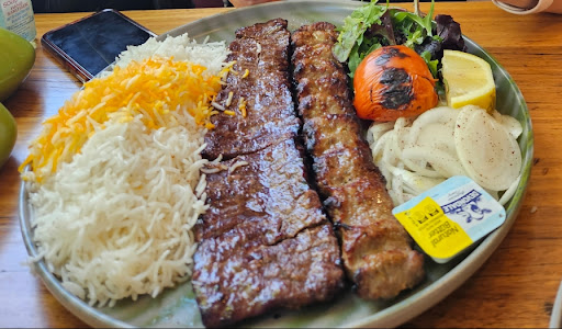 For our main course, we ordered two mixed platters, and the food was absolutely fantastic! The platters included four types of meat: Koobideh kebab, Joojeh kebab, Barg kebab, and lamb cutlets. Each type of meat was cooked to perfection, with the Joojeh kebab being tender and juicy, the Koobideh kebab flavorful and well-seasoned, and the Barg kebab incredibly succulent. The lamb cutlets were also delightful, adding a nice variety to the platter. The mixed kebabs were served with Persian rice, house sumac onion, grilled tomato, and lemon, which complemented the meats beautifully.