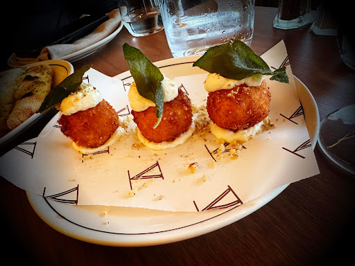 The menu at Five Vineyard is a culinary delight, offering a wide range of options to satisfy every palate. We started our meal with the beautiful olives and flatbread, which were absolutely divine. The arancini, a mouthwatering appetizer, left us craving for more. The flavors and presentation were impeccable, showcasing the chef's creativity and talent.
