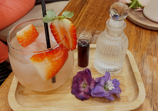 The food was pretty average to be honest. We ordered Big Brekkie’s - my friends’ mushrooms were served a bit cold and her bacon was also a bit undercooked compared to mine (or not as cooked as she would have liked) - otherwise it was fine. Drinks were probably the standouts on their menu. I ordered the Snow White and my friend ordered the Princess Peach Lychee Latte. Definitely presented nicely. There were theatrical aspects to some or their drinks - for example mixing in the purple dye in the Snow White drink (which I forgot to picture!) flavour wise though, I don’t recommend the Snow White. There was a nice tasting syrup on the bottom but the majority of it just tasted like sparkling water.
