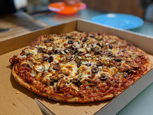 My son orders the chicken and pineapple pizza with mushrooms and garlic which has real chicken (not processed rubbish) and a generous spread of mushrooms.