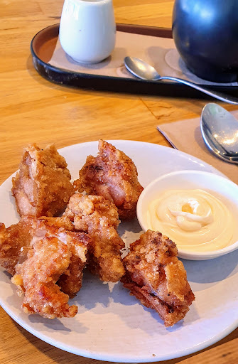 Read moreVisited Pepperstone Cafe for the first time this week - I'm kicking myself for having lived in the area for a whlie but not having checked it out sooner! Beautiful little cafe, peaceful and calm with a very welcoming and cheerful team. I started with the dandelion and turmeric latte because I always like to try something different; not sure I could taste the dandelion but the flavour was excellent and well-balanced. For a very late breakfast/brunch I ordered the French toast and a side of the Kaarage chicken with aioli (ordering when very hungry is a dangerous thing!). I usually avoid things like French toast as they can be quite sickly sweet but Pepperstone has the syrup on the side and only lightly pre-flavours the dish. Excellent flavour and the poached pear was a beautiful texture and made for really enjoyable meal. The kaarage chicken was a perfect contrast - hot, crisp and a good savoury balance. Needles to say, I ate everything and was a bit sad (but very full) that that was all. Price was very afffordable for all that I ordered and I would definitely be happy to come back on more...