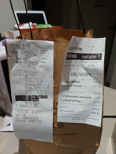 (ORIGINAL REVIEW) The food at Gami Werribee is really great, however when I ordered a delivery through Uber my receipt was stapled to someone else's bag/order and I received someone else's food. I called the restaurant to advise that both I and someone else will be missing their order.