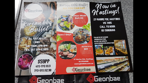 Read moreIt's so great to have Geonbae in Hastings now and I will definitely be coming back again. The staff are super friendly, always helping if you are confused to what something is, one of them was nice to ask the chef what the cookies were made of that came with my dessert. They have a good selection of Korean drinks to try from sodas to alcohol. If you can't decide what to have ,they have to set menu's that you can try with a range of various Korean cuisine. The food was so yummy and fresh plus healthy aside from the fried chicken which is delicious. They also have really interesting sides as well. They meals are reasonably big since they are designed to share so careful what you order. You can take it home if you can't fit it in. They have take home menu's and they deliver just know that you can only get one side from that menu. The dessert was super yummy as well. Highly recommended for first timers, visitors in Hastings and Korean Cuisine lovers. It was expensive coming to around $116 dollars something but we spilt the bill and what you get, it's definitely...