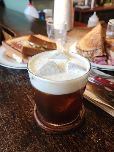 One of the highlights of our visit was the Mont Blanc coffee ($8 each at the moment). Itās a filter coffee-based iced drink (about 5 chunks of ice taking up more than half of the cup) with dark sugar, a layer of cream, and a hint of freshly shaved orange zest & nutmeg on top. The coffee was expertly brewed. Whether you're a coffee connoisseur or enjoy a good cup of joe, the Mont Blanc coffee is worth a try. We also indulged in their Ramen Egg Salad Sandwich and Pastrami DLX Sandwich. Both sandwiches were exceptionally delicious, and we couldn't decide which one we liked better. We decided to exchange halves to experience the best of both worlds. The Ramen Egg Salad Sandwich was a delightful fusion of flavours, with the creamy egg salad perfectly complementing the savoury ramen. On the other hand, the Pastrami DLX Sandwich was a carnivore's dream. Packed with flavorful pastrami, it was a satisfying and hearty choice.