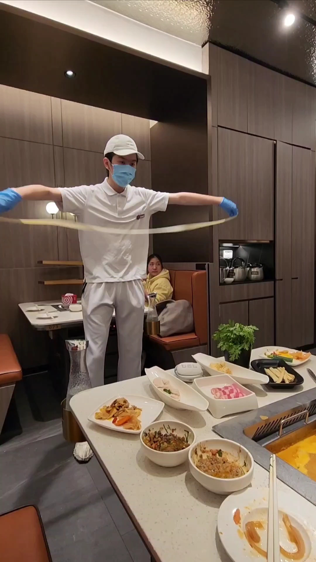 Some notable touches: They give you an apron so you donāt get hotpot juice on your clothes; Thereās a ziploc bag for your mask so that it doesnāt end up smelling like Haidilao for the rest of the day; Order some raw shrimp and they peel it for you at your table! Order some hand-pulled noodles and get a free dance show to go with it! If youāre dining alone, they have a set meal and separate booths for you to enjoy your meal in peace.