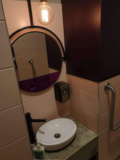 Atmosphere: Well decorated & Clean. Temperature is Climate Controlled. Toilet is modern with designer theme and extremely clean. Great Music at the right volume. Lots of occupied seating space.