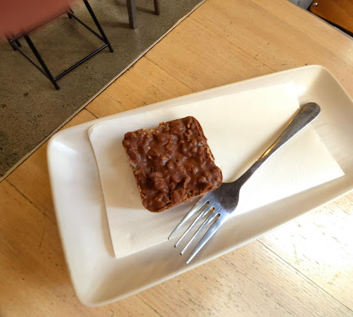Read moreA cosy diner with outdoor tables on the footpath and at the side, suitable for wheelchair access. Small but delicious selection of food and great value. Vegetarian frittata warmed up with cold colourful couscous and vegetables salad $19. Yum. Salads change daily but are always vegetarian. Bagels are reuben, salmon, chicken and one vegetarian today; I'm sure if you ask nicely of the very friendly staff they would make a vegetarian bagel or burger to your taste. Small selection of cakes and muffins; today had the very rich peanut butter & chocolate rice crisps square, and took home a slice of the lemon drizzle cake. Coffee...