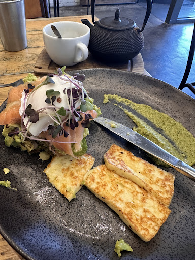 Read moreTwo young women serving. One in a red t-shirt with tattoos very friendly and welcoming and clearly understands customer service. Lovely bubbly young person. Ordered eggs and a coffee to have outside. Another young server must be the runner i guess, delivered the coffee. No sugar on the table so I stood up and went back inside to ask for sugar which is minor but annoying when you want to relax and it should be automatic to make sure the customer has what they may need. Then same runner delivered my eggs. No salt or pepper on the table and not offered. Again I had to get up, go inside and find salt and pepper. Eggs were great. Cafe was quiet only 2 customers so not providing sugars, salt or pepper to those outside did make my experience not relaxing as each time I had to get up I had to carry all my bags. Not major but the runner server needs some training and a bit of awareness of what people have with coffee and food. Otherwise nice place and kudos to the bubbly host server in the red t-shirt. I watched her be super welcoming and enthusiastic with other customers that came...