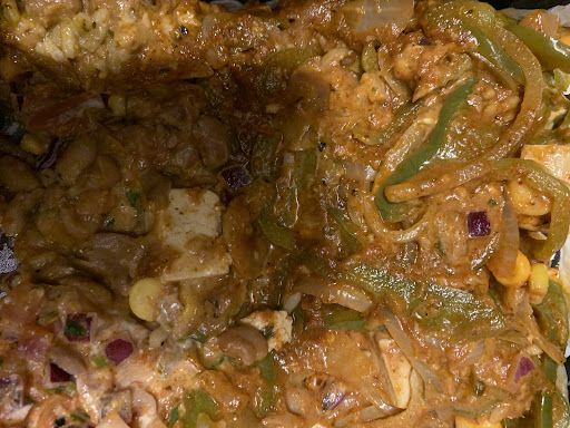 We ordered the corn dish (to share) along with our drinks while we decided on the mains. The menu was confusing and the franchise’s menu policy apparently inflexible. Dishes had base prices and “instructions” on the extra costs for additives. Dining in many restaurants (here and overseas),we know how menus work, but at one point, we had to ask whether the base meal contained meat as one of the additional costs was for meat.