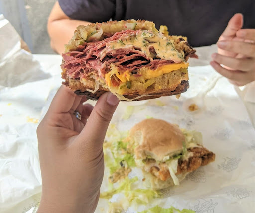 Pastrami and pickle sandwich was perfect, fatty meat cut through by the pickles and sauerkraut. Would definitely recommend the hectic sauce as well for that extra saucy tang.