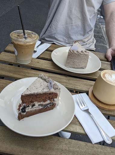 One of my favourites ever since I first visited! The iced matcha latte is genuinely one of the best I’ve had, it has a hint of honey that’s not too overpowering and its not too sweet either. The matcha flavour is also authentic, strong but not overwhelming, definitely not watery and diluted like other places may make it. The banana bread was offered to be warmed and I’m so glad it was because it was also delicious and super nice with the exterior slightly toasted, I wasn’t expecting to be so impressed by their banana bread either!! As for the service hospitality was 10/10, the young lady working there was super friendly and kind which contributed to the great experience here. A small cosy spot that has really nice looking sweets on display and an overall aesthetically pleasing look to it both from the exterior and interior too. Really pleasantly surprised to stumble across this spot with my friend and we both enjoyed it a lot 😊 It became the first matcha she ever tried that she so genuinely enjoyed that it actually opened her up to the world of matcha afterwards. Definitely a spot to visit and...